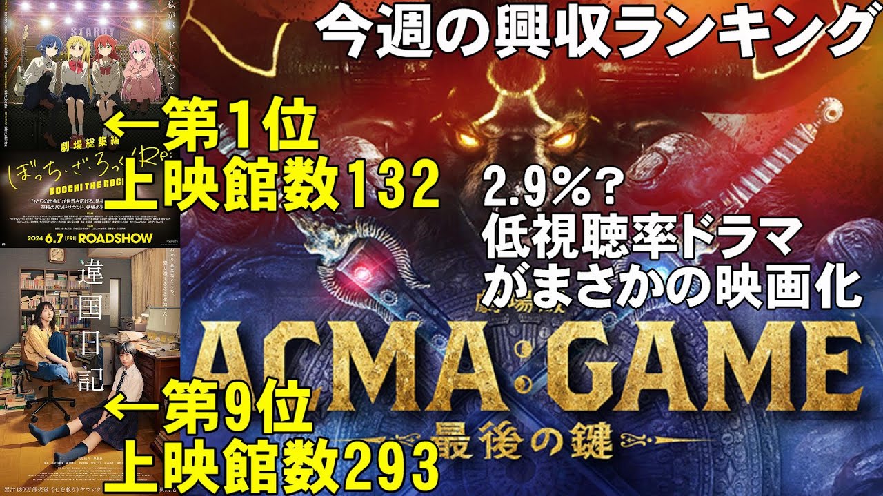 低視聴率ドラマがまさかの映画化&興収下剋上【俺的映画速報Vol.272】【興収 興行収入 興収ランキング ぼっち・ざ・ろっく! 違国日記 ヒュリオサ ACMA:GAME】