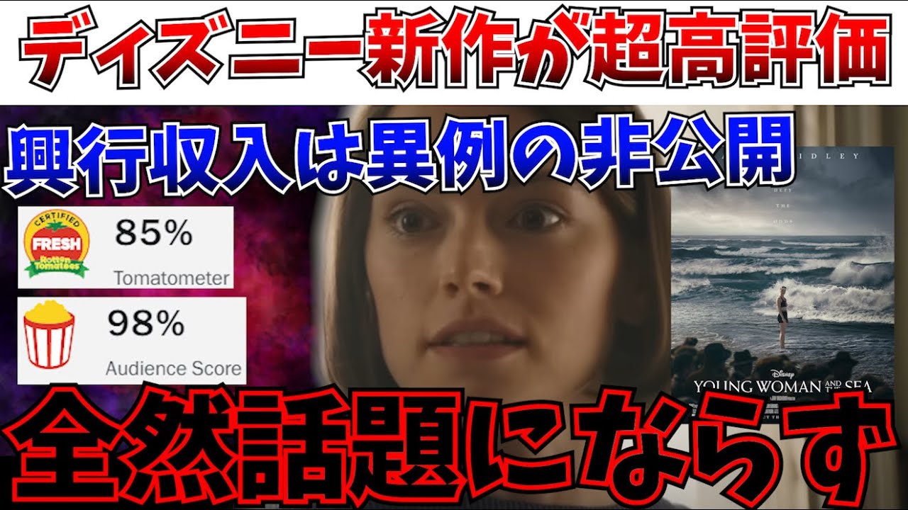 分離主義勢力の諸君ご機嫌よ行かれた動画 にようこそここは地獄でさて今回の日さん はディズニーの新作映画にしてスター ウォーズでレイパルパティーンを演じた デイジーリドリー選手の主演作となる とある映画が公開され散らかしたのでそれ についてこのIQ1.4兆の俺様が語って いこうと思うぜお前らの穴かぽ年にな一体 全体何がどうなっているのかっていうとだ な今年様々なディズニー関連の映画が少し ずつ公開されているよなそんな中ついに ウルトディズニーピクチャーズによる新作 の実写映画が公開されやがったこいつは ブラックアイマーがプロデュースを務め 監督はパイレーツオブカリビアン最後の 海賊などを務めたやつということで いわゆるパイレーツスタッフによる新作 ディズニー映画ということになあるうう ワクワクするフレーズだよな最高さらに 主演はスターウォーズでレイ パルパティーン役を務めたデイジー リドリー選手だいわゆる実はもの映画と なっていてドバー海峡を水泳で横断した 史上初の女性の話たうんすげえよなレイ パルパティーンの次は実在する偉人ときた ものだ時代背景は1924年でこの当時は 女性差別も根よくそういった挑戦をする ことに対する風当たりも色な意味で強かっ た時代だそんな中で21マイル泳いで横断 を達成したネキの物語だこう聞いたらなん というか最近ありがちなディズニーの表面 的なはフェミニズムに収支するなんか退屈 で説教臭いなんか物語かと思う人間もいる と思われるがそうではないことは後ほど 紹介するレビューを見ればうん分かるはず だこいつは日本ではおそらく配信映画とし てリリースされ散らかされる可能性が高い のだが海外においては2週間限定で劇場 公開され散らかしている理由としては テスト上映の評価が非常に良好だったから これ劇場でやるしかないっしょといった 判断になったらししかもブラックアイマー によるとかつてないレベルの評判の良さで えぐいてとビビったと語っている正直この 手の話については今一信用できないのだが この度ついに風切りを迎えその評価が 明らかとなったこれがロテトマトにおける 非評価とオーディエンスの行かれた評価だ そう結論としては見事な大絶賛だ評価 スコア85%オーディエンススコア98% だ98だぞ98とんでもねえ数字だよな このスコアでクソ映画である可能性は限り なく低いと見ていいだろうまあんまり俺は 好きじゃなかったなみたいな着地になった としても少なくともまあまあまあままよく できてるとは思うよぐらいには絶対になる であろうという担保が取れるぐらいの評価 だなうんいくつかの観客評価を見ていくと デイジーリドリーはキャリア史上最高の 演技ついに見る価値のあるディズニー映画 が見つかった最初から最後まですばらしい 感情に訴える力があるやる気さえあれば昔 と同じようにディズニーは映画を作れる らしいこいつは驚きだここ数年で最高 レベルの映画などなどとてつもない絶賛の され方をしているあちょっと皮肉も混じっ ていたような気もするのだがしかしま褒め られているな非常化からの評価こいつも 見事だ女性に焦点を当てた感動的な スポーツ映画には大まかで空虚な表面的な ガールズパワーの視点が含まれることが 多いがこの映画はそれを見事に回避して いる彼女は女性の代表としてではなく自分 自身1人の人間として様々な障害を 乗り越えながら人生をかけた大きな チャレンジをしていこうとしている女性は 強いといったことを証明しようとしている メッセージ性ありきの映画ではなく自分 自身の可能性を証明しようとする1人の アスリートの物語である1人の人間の ドラマとして非常に良質だといったものだ なま要するにだ主人公の性別が女性なだけ であってよくある空虚なメッセージ性あり の物語ではなく1人のアスリートとしての 物語をしっかりと描いているということだ もちろん時代背景が時代背景なので当然の ようにそういったま女性差別に対する言及 も存在するだろうがましかしそういった メッセージ性が先行するような物語という ま最近のディズニーにありがちな メッセージあの組み立ての作劇にはなって いないということだなまこの評価を信じる のであれば結構楽しみだなま言うても ブラックアイマーだーからなって感じだ さてそんな大絶賛を持って公開されたこの 映画だがぶっちゃけた話をするとビビる くらい話題になってないええお前らの中で 誰か1人でもこの映画の存在これを認知し ているやつはいるかそもそもこの映画の タイトル今口に出して読めるやついるか 呼べあのちゃんと覚えてて口に出せるやつ いるかこの映画のタイトルいないよなワン チャン下手したら日本どころか世界におい てもマジで話題になっていない元々こいつ 配信向けの映画でそこまで宣伝してい なかったっていうのは大きいだろうが ディズニーはこの映画について映画の名声 を傷つけたくないために業収入を公表して いない