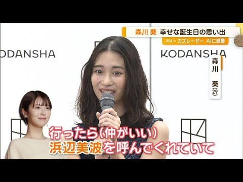 本当は心の中でこう思っているよていう ことを人に知ってもらいたいと思いながら 書いていたはずだったんですけどあ自分 ってこういうことを考えているんだって 気づいたことが変化ですか ね森川蒼井さんが執筆活動について語った のは初めてのエッセー人生に諦めがつか ないの発売記念会見 です昨日は森川さんの29歳の誕生日と いうことで本の表紙にもなっている飼い猫 2匹をイメージしたケーキが送られました 本当に嬉しいですキキとやんがついてて めっちゃ可愛いですありがとうござい ます可愛いケーキに大興奮の森川さんに 忘れられない誕生日の思い出を聞く と去年あの友達がそれこそ誕生日をして くれるってなって行ったらあの浜辺南を 呼んでくれてて友もからあスケジュールを たたのスルを抑えててくれたらしくてでた もたんでお誕生日お祝いしたいって言って 駆けつけてくれて本当にすごく幸せな 嬉しい誕生日でした