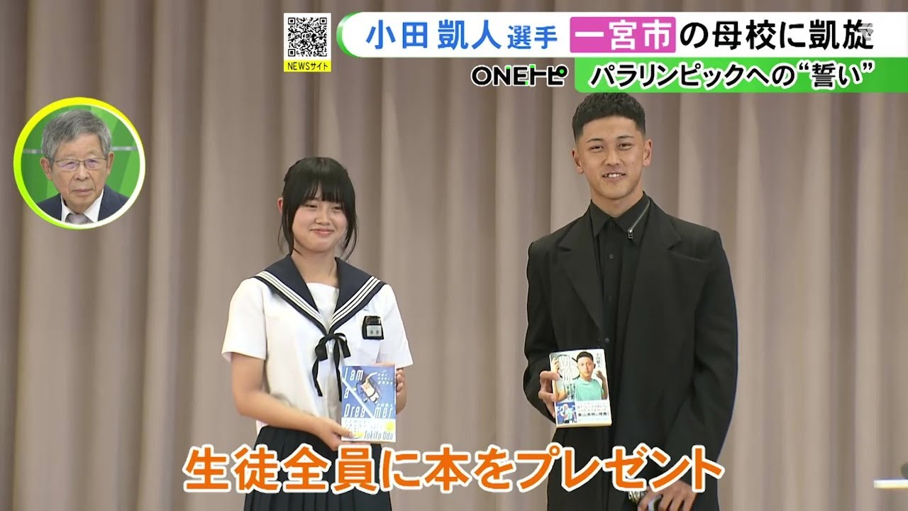 皆さん こんにちは西内中学校出身 の大きな拍手を浴び一宮の母に凱したプロ クロイステニスプレイヤー織田 選手今日自らの奇跡をまとめた出版れたの 記念 して48 [拍手] しまし た学校はすごい僕は楽しくて友達と会える し給食食べれるしすごい僕にとっては特別 が面白 です中学時代の恩師からは2年生の時に 書いた式神がこ写真やばいやばいやばい 髪の毛と書いて1番と読むもう当時からね 1番というかねナンバーワンていうのを もうすごく意識していたえ証拠かなと思い ます時とと底1番まさに有限実行 です生徒からはなんですけど大会などで どうしても緊張してしまう場面が出てくる んですけど練習も試合も一緒だと思って やってます試合がま明日来るとなっても 同じように昨日やったことをやるだけ 現在世界ランキング1位の小田選手この夏 のパリパラリンピックでの活躍を誓い ます結果として出てくれてるから根拠の ある自信っていうのは徐々に自分の中で 作り上げられてるのでまパリー終わっても 凱旋したいなって思ってます