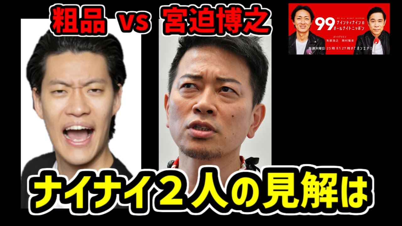 【粗品 vs 宮迫博之】この騒動にナイナイ2人が思うこと【ナインティナインのオールナイトニッポン 切り抜き】