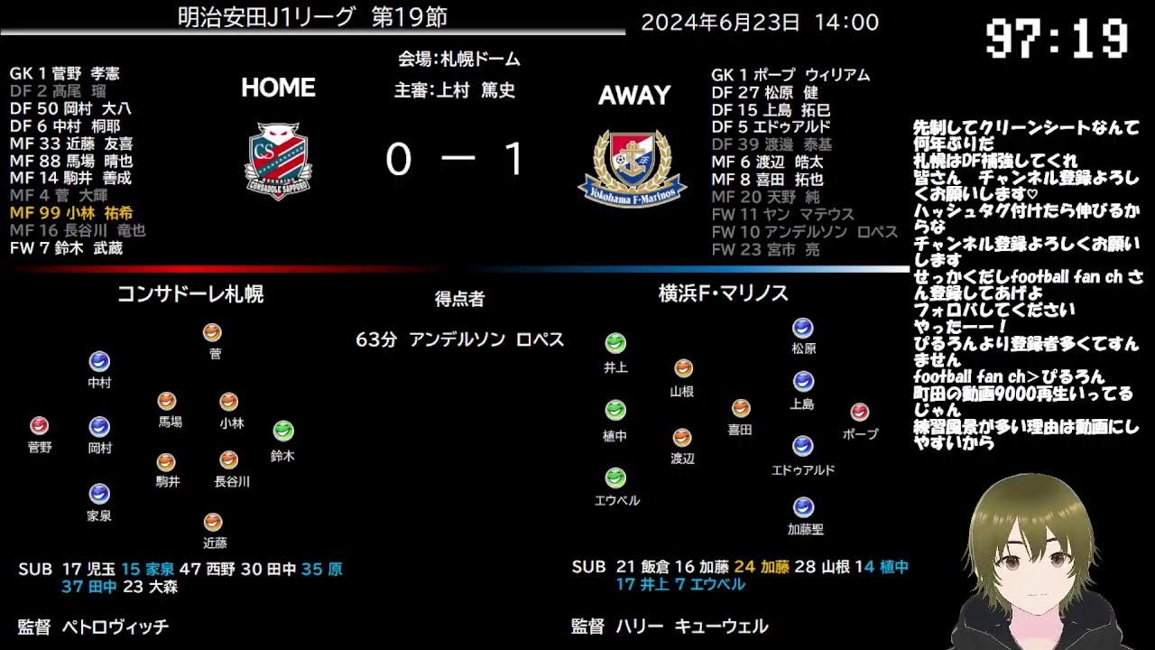 【音声実況】Jリーグ コンサドーレ札幌vs横浜F・マリノス