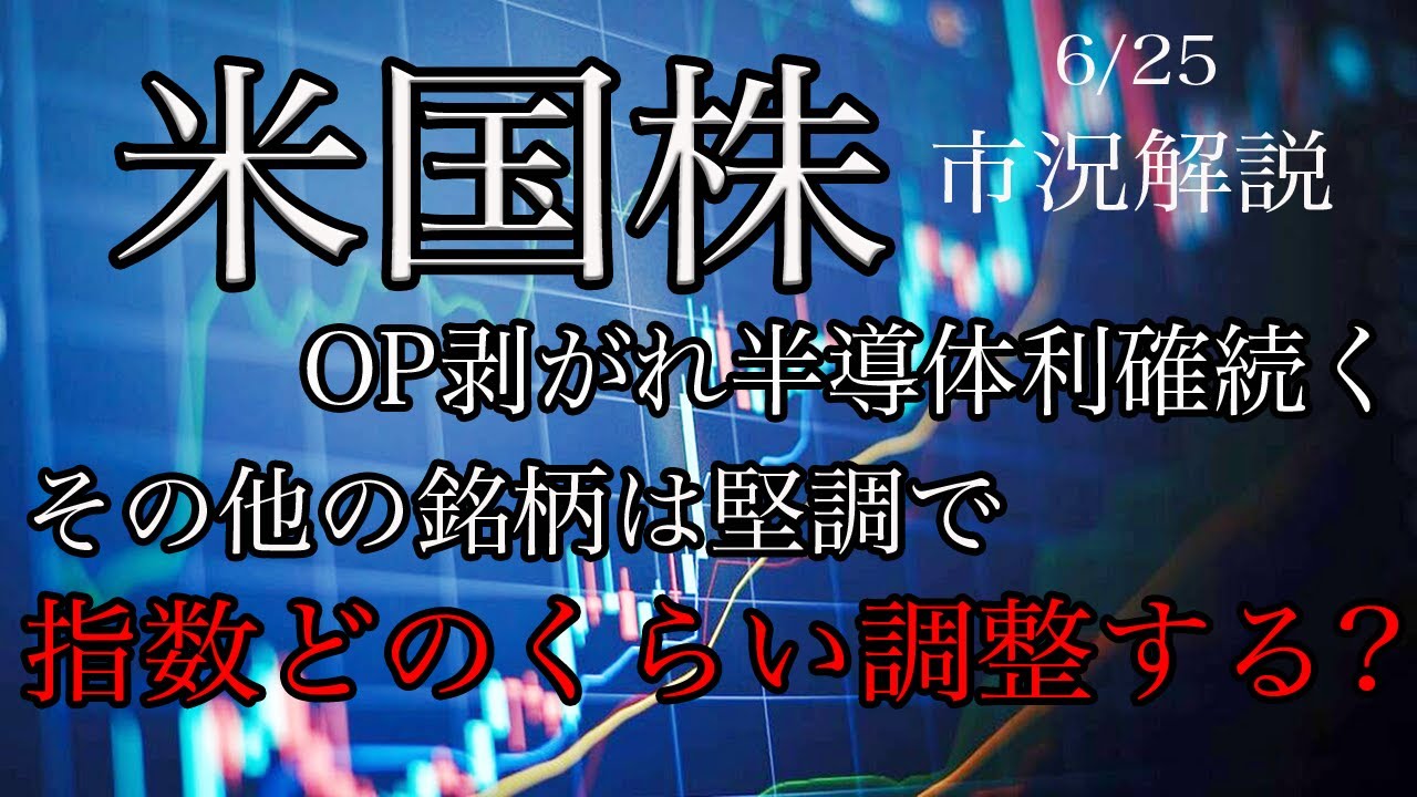 6/25【米国株】OP剥がれ半導体の利益確定売り続く!その他の指数に寄与度の高い銘柄はまちまちで、指数調整いつまで続く?