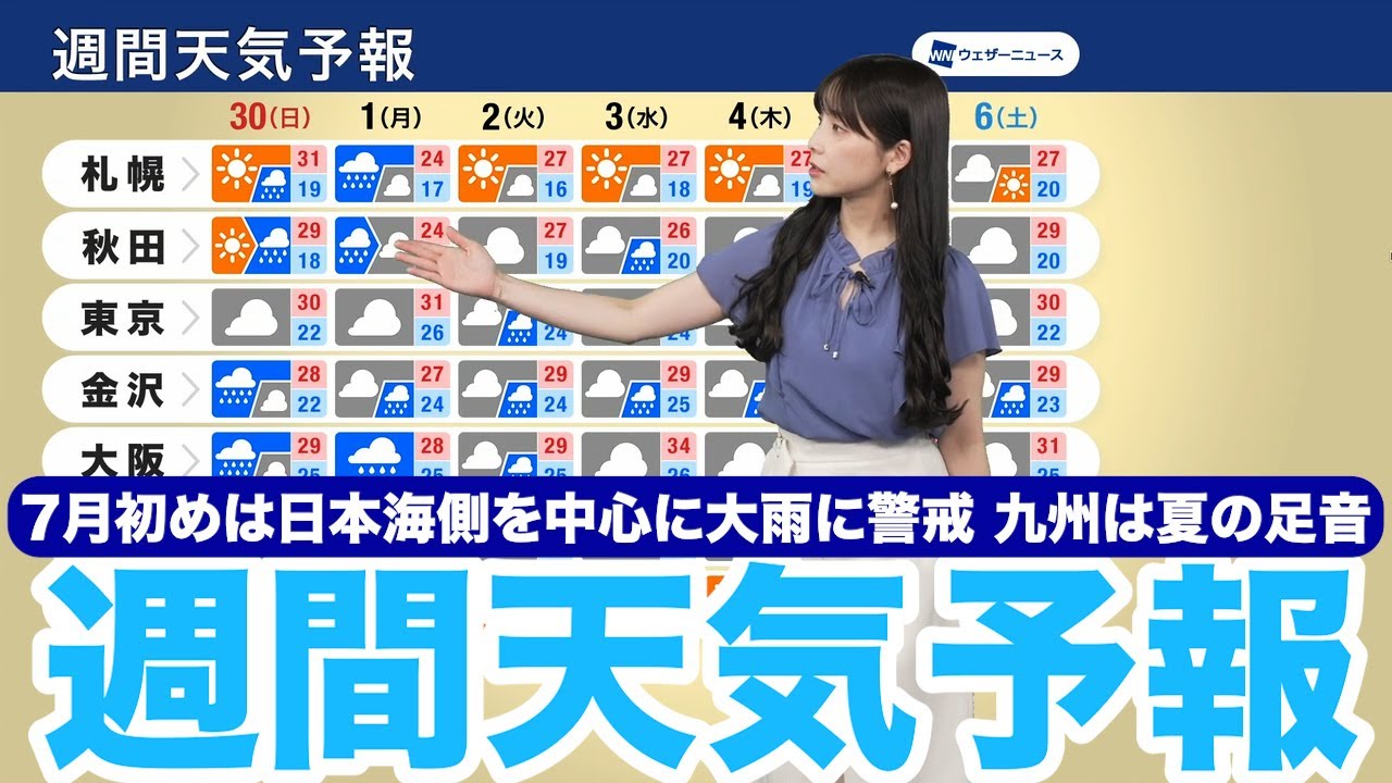 【週間天気】7月初めは日本海側を中心に大雨に警戒