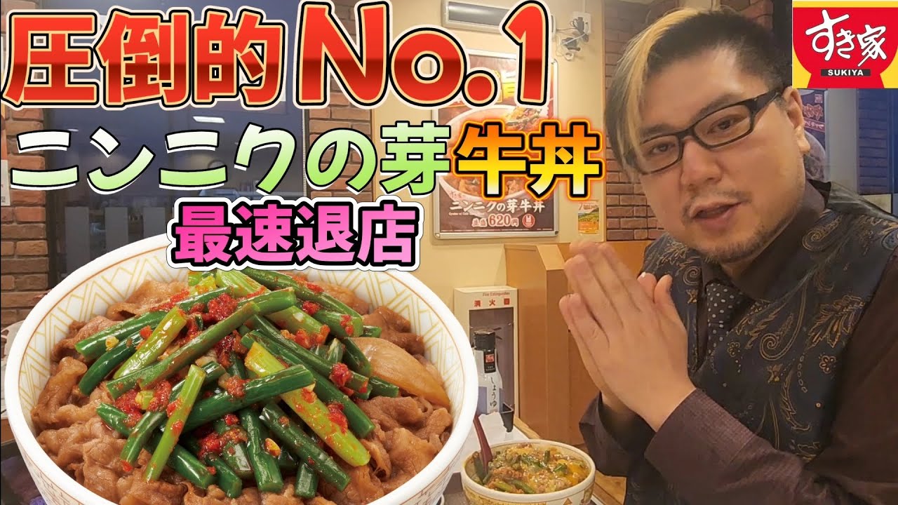 【最速退店シリーズ】すき家 ニンニクの芽牛丼で最速退店する男。