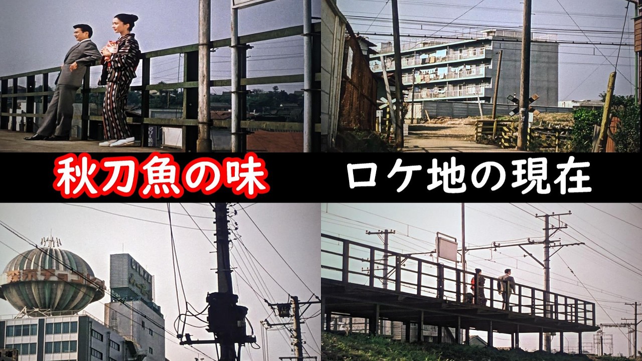 1962年小津安二郎監督の映画「秋刀魚の味」のロケ地を現在と比較する動画です。ほとんどの撮影地は鎌倉の大船撮影所となってますが、数少ないロケ地が東京都大田区東雪谷の東急池上線の石川台駅となってます。岩下志麻さん演じる路子と吉田輝雄さん演じる三浦さんが電車を待ってたシーンです。石川台駅のホームの土台の部分なんかは62年前とほぼ変わらずですが、周りの風景はマンションや高い建物が建ち並び変わってしまってます。石川台駅近くの踏切も出てきておりその場所も特定しております。最後は映画のカットで出てきた銀座の森永地球儀ネオンのあったビルを比較しています。