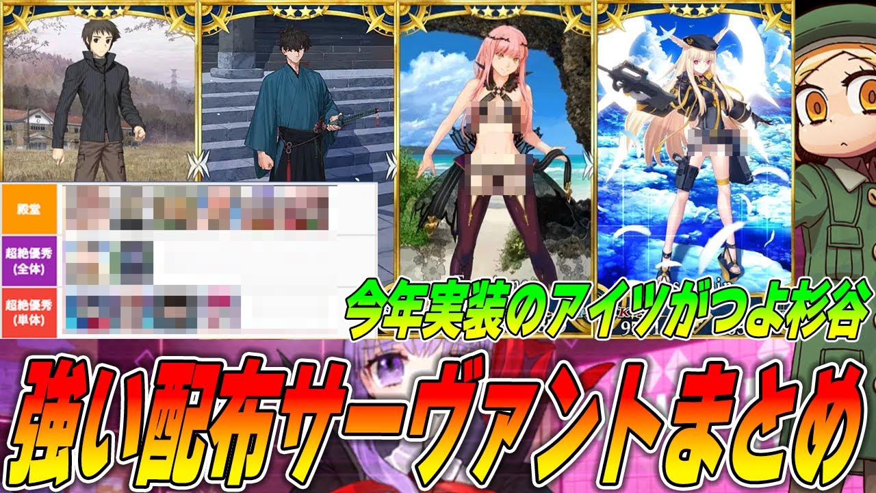 はいどうもこりかんですえ本日はえ今年 実装されたとあるハフサーヴァントがあ やっぱり強えなと思ったんでえ改めて1年 ぶりですかねハイフサーヴァントのま最強 ランキングというか強いハイフサーバント を紹介していこうというそういう動画で ございます特にランキングとかティア表と かま紹介するはするんですけどまそんなに 深くはね考えてないんで漠然と強いハイ サーバントが欲しいんだなっていう方はね 是非参考にしていただければなとそういう 感じでございますそれでは本題に参ります はいで早速一旦1番話したいことなんです けど宗十郎今年ね魔法よコラボで実装され たし宗十郎なんですけどやっぱり強かっ たっすねなるべく安い周回編成を考える時 とかに今回ね90プラプラちょっと1 ウェブが難しくて小田チェン増えそうだ なっていうところで総十郎で無理やり1 ウェブの30万とかをオベロンのブースト とかをかけて無理やり突破してデス チェンジしてみたいなそういう編成で向金 的にはめちゃくちゃ強かったと思うんで うんやっぱり改めてやっぱ相中労強えなと 思いましたなんというかその使い方だと 配布サーバントをメインの戦力にする人 ほど強く感じられるっていういい サーバントだと思いますしあとはね攻略も ね今回の盗難移動とかを通してあやっぱり 強えなと周回でも攻略でもこの撤退するっ ていう自分を犠牲にしてで4番目の サーバントを小田チェンみたいな感じで 出しますよみたいなこの動きがねね やっぱり強すぎるなと高難度でもなるべく 安い編成を探そうってなるとアタッカーの ホグレベルだったり黒性牌の凸無凸とか そういうところがちょっと足りないとか そういう場合に1番硬いやつ全体宝具を 使いたいクエストだとしてもちょっと全体 宝具だと火力足りないなっていう時に操縦 ロを使ってで突破した後はちゃんと撤退し てくれるんでまた別のサポーターを 呼び出して例えばアタッカーが緊急なん だったらどんどんさらに1話確定で 入れ替えできますとみたいな感じなんで その確実性って言うんですかねなるべく運 要素を減らそうでしかもちょっと足りない ところを補ってくれるっていう感じでね すげえ強かったんで小田チェン系だと ミスクレンとかクロエとかあとはノブカツ アーラシュチキとかいるんですけど攻撃 宝具で単体でしかもバーサーカーっていう ところを考えると単体に出せる火力って いうのは操縦郎ちゃんと強いし味方に 渡せるバフはないんですけどチキを相方と して使うとバスター50バフもねもらう こともできてあとはやっぱりNPバカがね すげえ偉くて一緒にキャストリア使ってる とキャストアクティバ はねやっぱり強えなと周回ももちろん攻略 もめちゃくちゃ強かったんでえ今年実装さ れたばっかりでちょっと宿さ入りは まだまだ遠いかなとは思いますがうん ガチャ減級というかま下手なガチャゲより かは強いし使い勝手がいいと思うんで やっぱり最強だなとこういうアーラシュと かチキみたいに自主退場できる サーヴァントはやっぱり強えなと思ったと いう話でございますで今回やっぱ操縦郎 強えなと思ったのはどっちかと無課金より のなるべく安い編成を組もうってなった時 にあすげえ便利だねみたいなそういう ところで評価してる感じなんですけどえ 聖杯を入れてる人だったり集会を めちゃくちゃ頑張ってますよ大量に集会し ますよっていう人がえ1ウェブを総十郎お 手軽突破で実質オダチェンなしの4枠周回 みたいなそういうところではねまだはまっ てないんで今回は本当に無理やり操縦ロを 使いましたっていう感じなんで本当に操縦 ロがま最強かなみたいなそういうクエスト も来て欲しいなとも思ってますなので将来 的にはおそらくガチ勢的にもめちゃくちゃ 強いしでライト勢とかなるべく配布 サーバント中心で考えていこうっていう人 からしてもめちゃくちゃ強いんでやっぱり 最強配布サーヴァントの意だと思います はいで次に軽くあのハイフサーバントの 最強ランキング的なものを軽くティア表で ね作ってきたんですけどで最初に注意点な んですけどえっとねハベトロットとかえ アニアンそしてセイバーリリーはえこの表 に入れているんですけどアニングとノブか とあとはステイナイトの配布の [音楽] アルトリアペンドラゴンマルタサンタ ナイチンゲバニアンハベトロットこの6期 ですで今回はそんなに細かく紹介する つもりはありませんがえまずは操縦郎なん ですけどここに入れるかどうか2秒ほどね 悩んだんですけどこのでも強いしもしここ にアラシとかチキとか入れていいんだっ たら絶対に並ぶなと思ったんで1番上に 入れちゃいましたで操縦に関してはさっき ね紹介したばっかりなんでこんな感じで 省略でバニアンとノクナレアに関しては 大量に周回する人から考とまガチャゲを 超えるガチャゲよりも優先して採用する 理由防具速度が速すぎるサポートして金と 立ちと相性が良すぎるとかそういうと