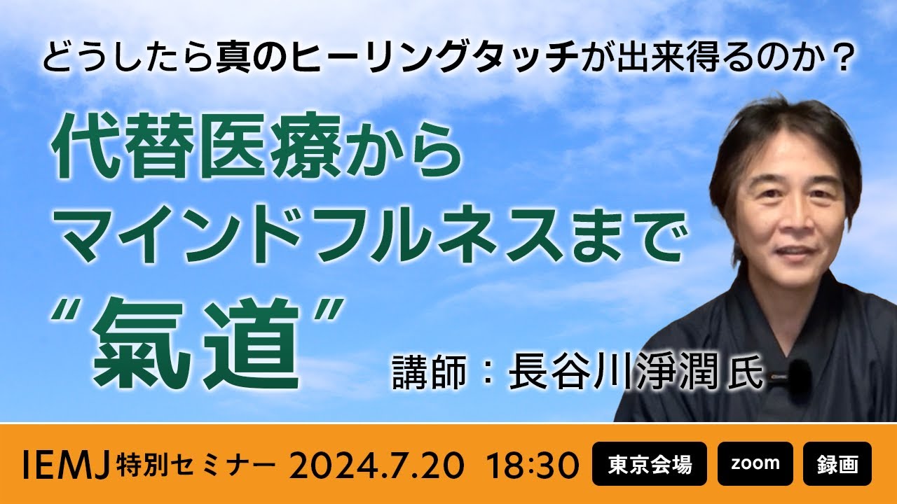 2024年度の特別セミナー7月は、氣道”協会代表の長谷川淨潤(はせがわじょうじゅん)先生による「代替医療からマインドフルネスまで ─ “氣道”」が開催されます!
