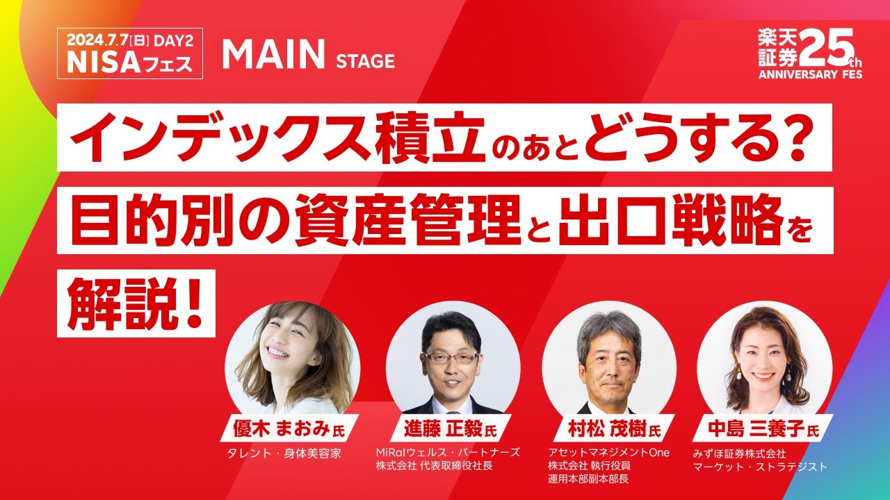 【優木 まおみ氏 × 進藤 正毅氏 × 村松 茂樹氏 × 中島 三養子氏】インデックス積立のあとどうする?目的別の資産管理と出口戦略を解説!/楽天証券25th ANNIVERSARY FES