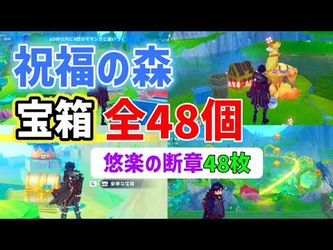 祝福の森エリア宝箱「全48個」悠楽の断章「48枚」 シムランカ 夏イベ初日 綺良々新コスチュームの交換に必要 陽夏!悪龍?童話の王国! イベント ver4.8 攻略 原神