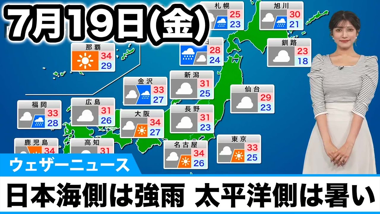 7月19日(金)の天気予報 日本海側は強雨に注意 関東など太平洋側は厳しい暑さ