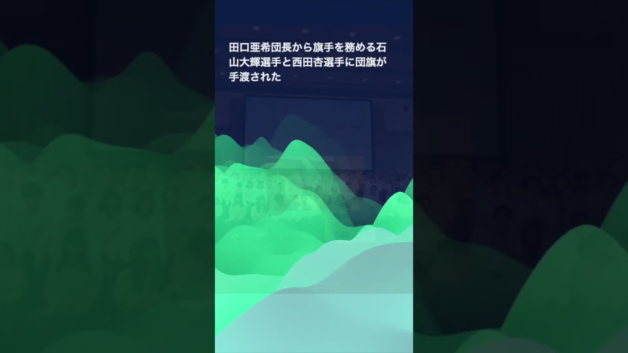 式典では、パリに挑む日本選手団のスローガンが発表された。多数の候補から3つに絞り、選手投票で最終的に選ばれたスローガンは「挑め、自分史上最強。」。石山選手は「一人一人がこのスローガンを胸に世界の壁、自分の壁に挑みたい」、西田選手は「お互い意識を高め合ってベストパフォーマンスを発揮し、今まで以上の自分に出会える大会にしたい」と抱負を述べた。