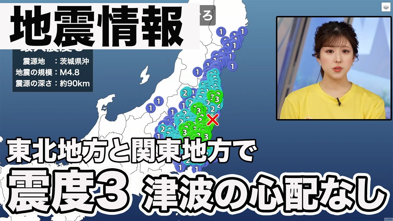 【地震情報】東北地方と関東地方で震度3 津波の心配なし