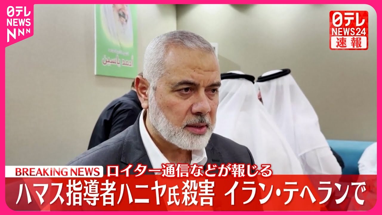 イスラム組織ハマスの指導者・ハニヤ氏が31日、イランで殺害されたと、ロイター通信などが報じました。