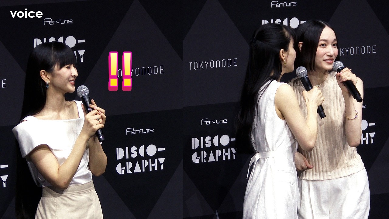 Perfumeが8日、東京港区・TOKYO NODE HALLで行われた「Perfume Disco-Graphy 25年の軌跡と奇跡」開幕直前&Perfume周年企画記者発表会に出席した。