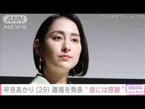 女優の早見あかりさんが離婚したことを発表しました。