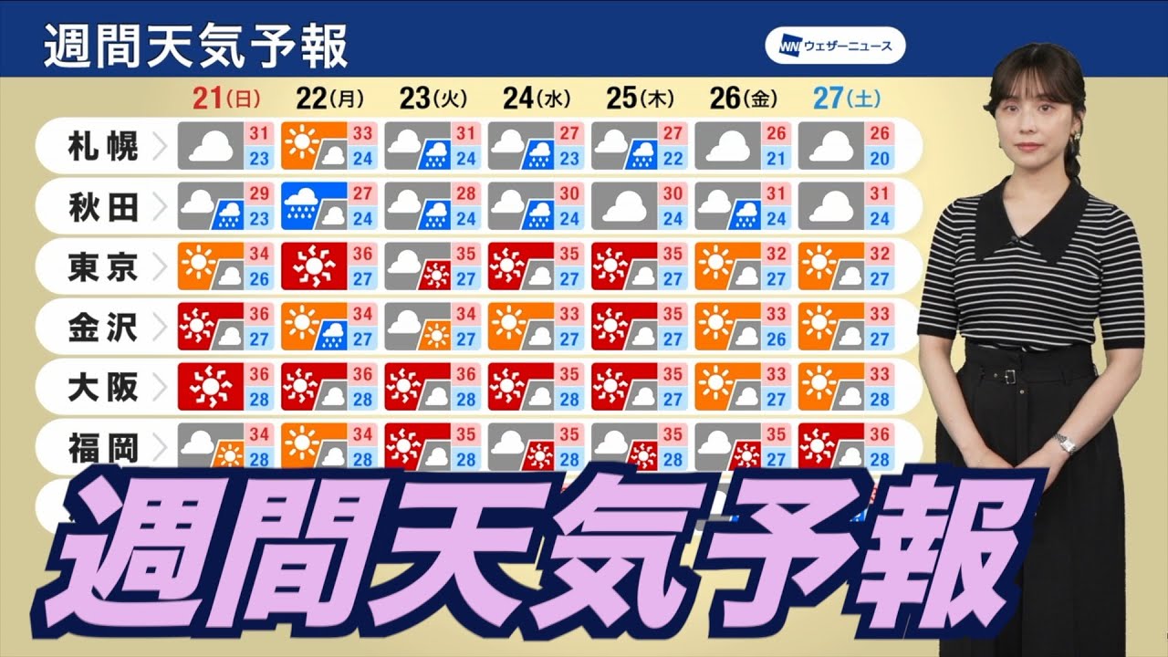 【週間天気予報】来週にかけて猛暑に警戒・日本の南では熱帯低気圧の動向注視