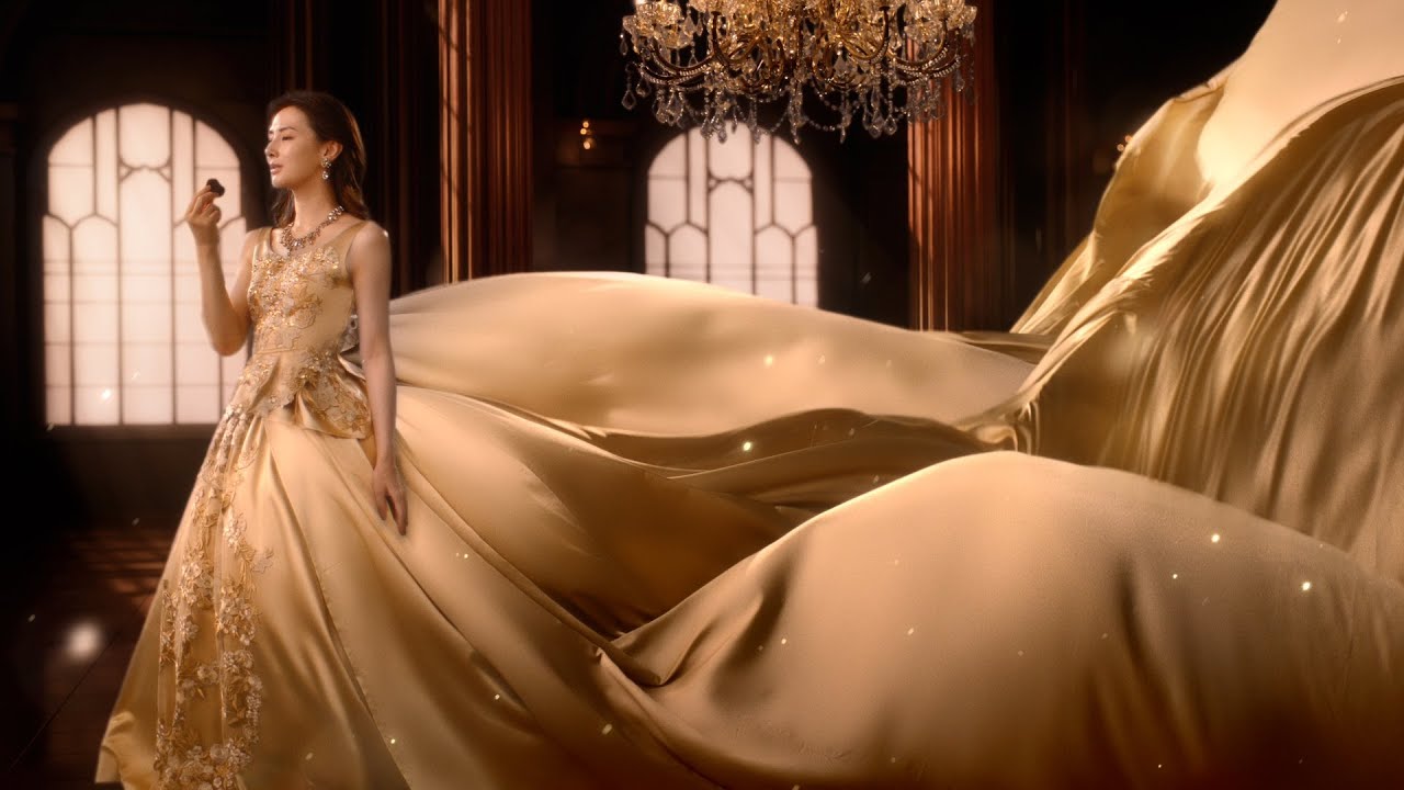 新たに公開されるCMでは、“贅沢”という商品のコンセプトそのままに、金のドレスを身にまとった北川景子が登場する。