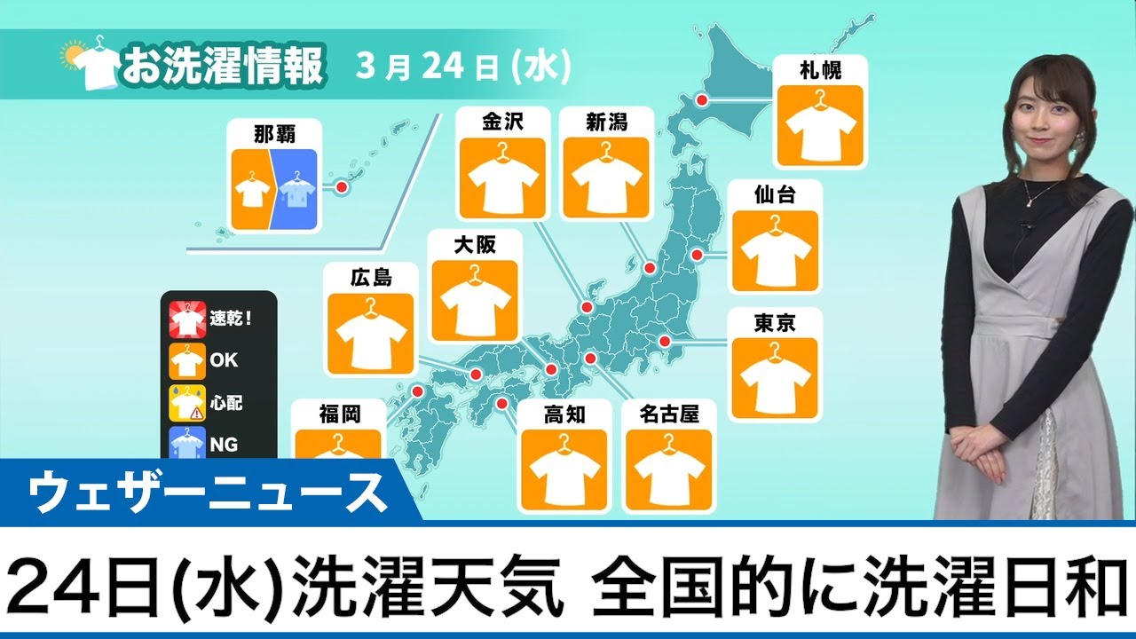 全国的に洗濯日和です! 2021Casterウェザーニュースキャスターゲリラ豪雨ゲリラ雷雨ニュース乾燥予報停電北日本台風台風情報地震大雨大雪天気天気予報天気痛情報暴風東日本気象気象予報士洗濯減災西日本防災