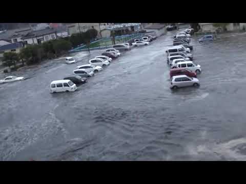 恐怖の津波映像 Tsunami in Kesennuma city, ascending the Okawa river