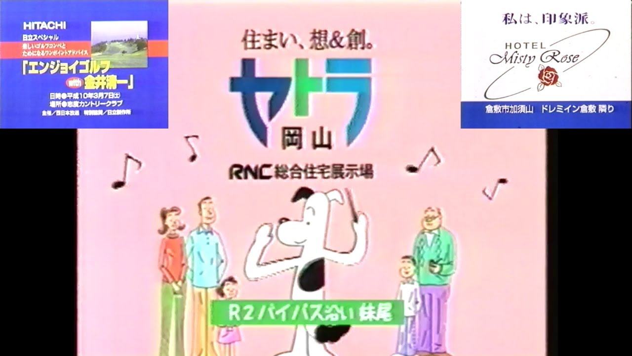 RNC深夜枠『ビデオ情報 GAHAHA TV』開始前に流れたローカルCM(1998.1.27 RNC日立エンジョイゴルフ+ホテル ミスティローズ+RNCセトラ岡山+高橋幸宏 リプトン)