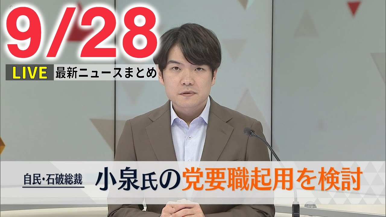 【昼ニュースライブ】最新ニュースと生活情報(9月28日)――THE LATEST NEWS SUMMARY(日テレNEWS LIVE)