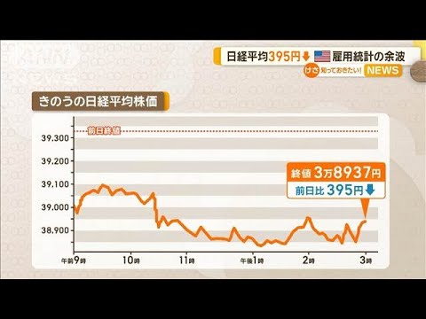 日経平均株価395円↓ アメリカ雇用統計の余波【知っておきたい!】【グッド!モーニング】(2024年10月9日)