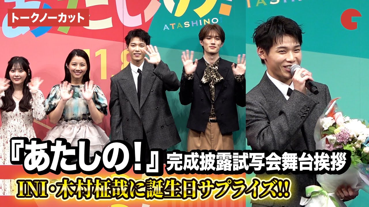 【トークノーカット】INI・木村柾哉、誕生日サプライズに照れ!?渡邉美穂&齊藤なぎさ&山中柔太朗がメッセージ『あたしの!』 完成披露試写会舞台あいさつ