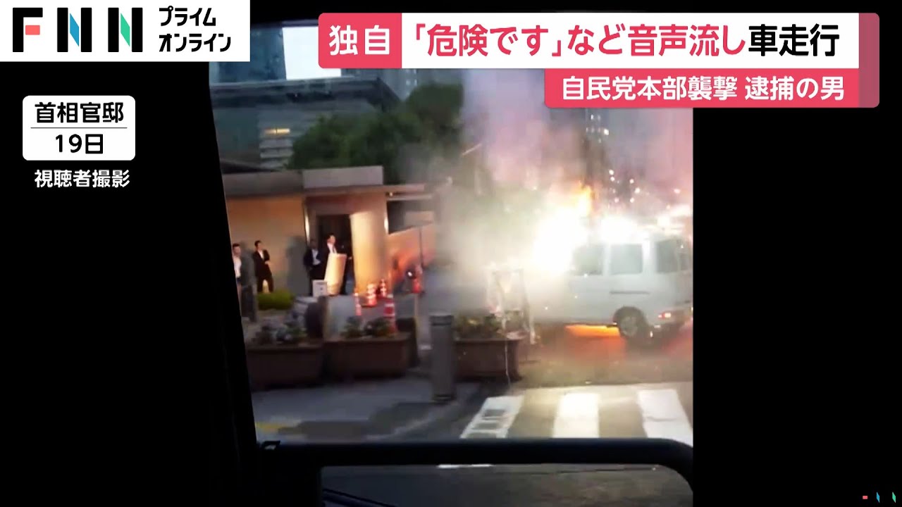 首相官邸や自民党本部が相次いで襲撃された事件で、逮捕された男の車が「危険です」「ワーニング」などの音声を流しながら自民党本部に近づいてきたことが新たに分かりました。