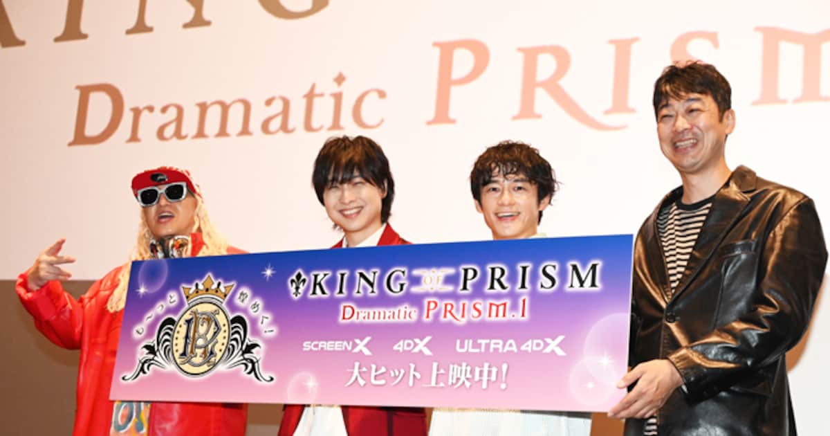 劇場アニメ「も~っと煌めく!KING OF PRISM -Dramatic PRISM.1-」が、本日10月25日に公開された。同作は8月に公開された劇場版「KING OF PRISM -Dramatic PRISM.1-」のラージフォーマット版。日本のアニメーション作品では初となるScreenX上映も行われる。公開初日の本日、一条シン役の寺島惇太、鷹梁ミナト役の五十嵐雅、菱田正和総監督、スペシャルゲストのDJ KOO(TRF)がファンとともに東京・池袋グランドシネマサンシャインの客席でULTRA 4DX上映を体験。上映後の舞台挨拶でその感想を語った。