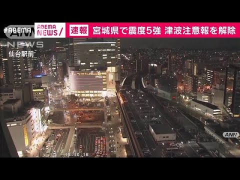 宮城県に発表されていた津波注意報はすべて解除されました。今後も気象庁の情報に注意して下さい。 [テレ朝news] https://news.tv-asahi.co.jp providedテレビ朝日ニュース宮城震度5強本編のみ津波注意報解除震源情報