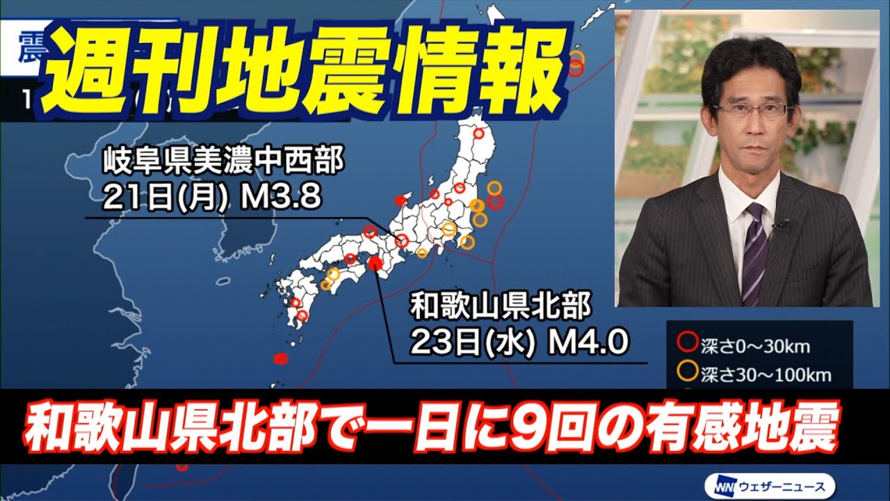 【週刊地震情報】和歌山県北部で一日に9回の有感地震(2024.10.27)