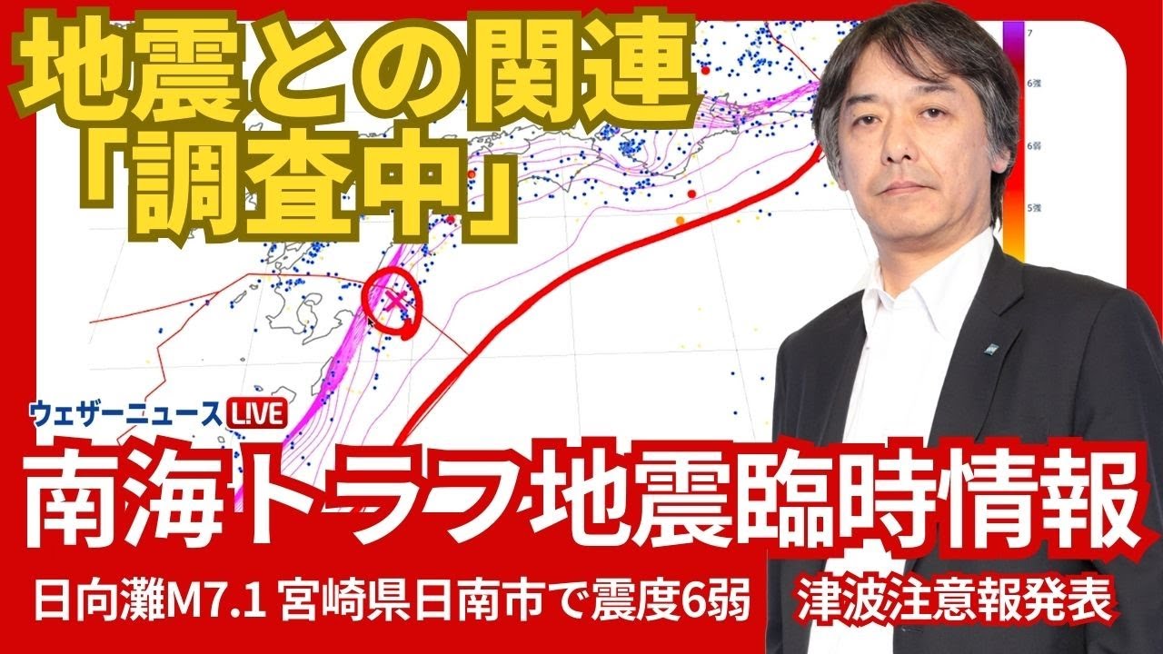 【南海トラフ地震臨時情報】 今回の地震と南海トラフ地震との関連は「調査中」2024年8月8日