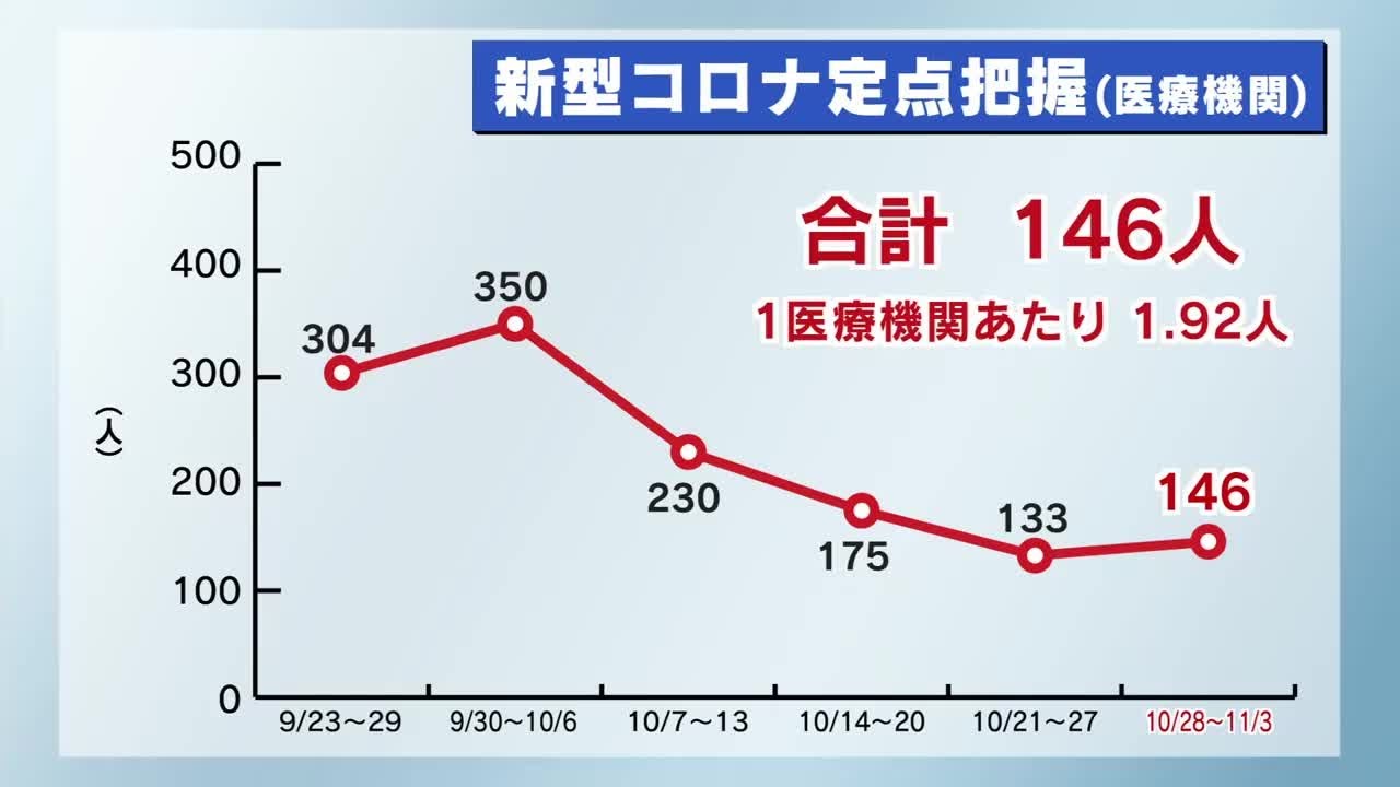 10月28日から11月3日までの1週間に県内の定点医療機関から報告された新型コロナウイルスの感染者の数は146人でした。