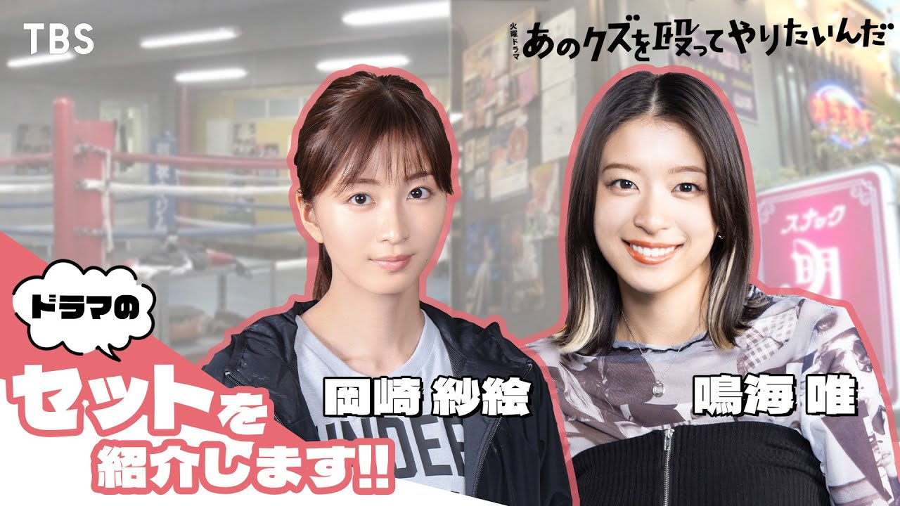 毎週火曜よる10時放送中の火曜ドラマ『あのクズを殴ってやりたいんだ』でおなじみの“羽根木ボクシングジム”と“スナック明美”を岡崎紗絵と鳴海唯がそれぞれご紹介!!