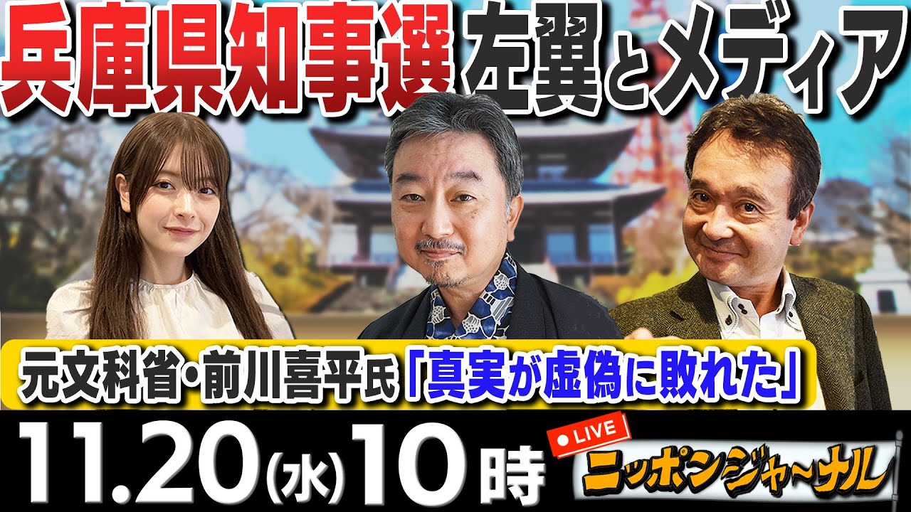 【ニッポンジャーナル】兵庫県知事選 前川喜平氏「真実が虚偽に敗れた」内藤陽介&井上和彦が最新ニュースを解説!