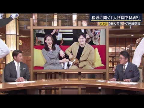 全米野球記者協会(BBWAA)が選出する最優秀選手(MVP)が21日(日本時間22日)に発表され、ナ・リーグではドジャースの大谷翔平投手が満票で2年連続、3度目となる受賞を果たした。米番組「MLBネットワーク」には真美子夫人、デコピンと登場。「ドジャースの一員としてもらったと思う」と笑顔を見せた。