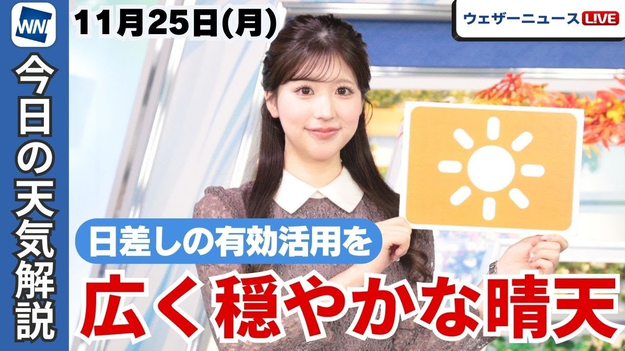 きょう11月25日(月)の全国の天気をウェザーニュースキャスター小林李衣奈がお伝えします。