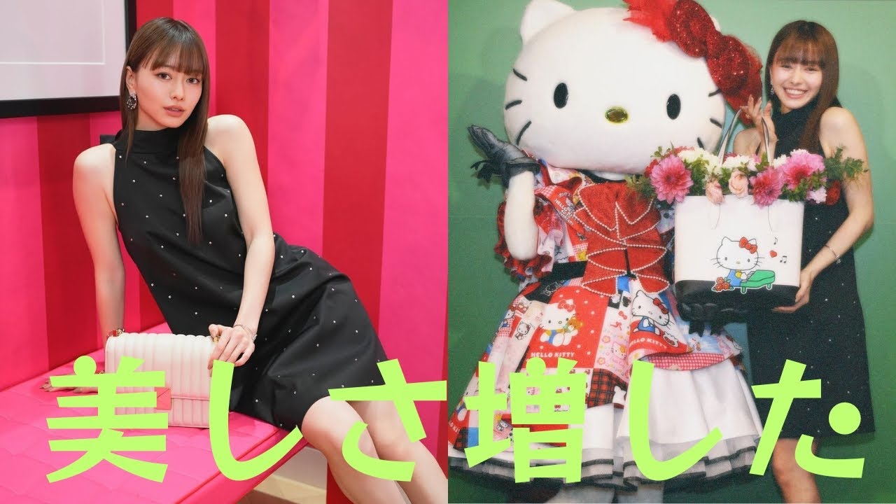 ミニ丈ドレスの山本舞香、お祝いに駆け付けたキティちゃんとの2ショット公開