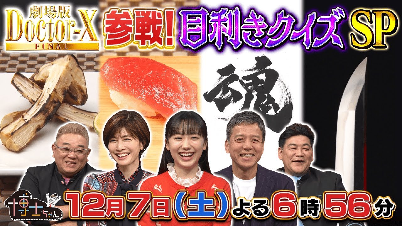 12月7日(土)サンドウィッチマン&芦田愛菜の博士ちゃん「ドクターX」から内田有紀と勝村政信が参戦!日本人なら絶対当てたい和の逸品目利きクイズSP!