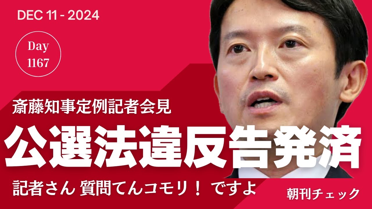公選法違反告発済み 斎藤元彦支持への質問てんコモリ! 定例記者会見(12月11日)