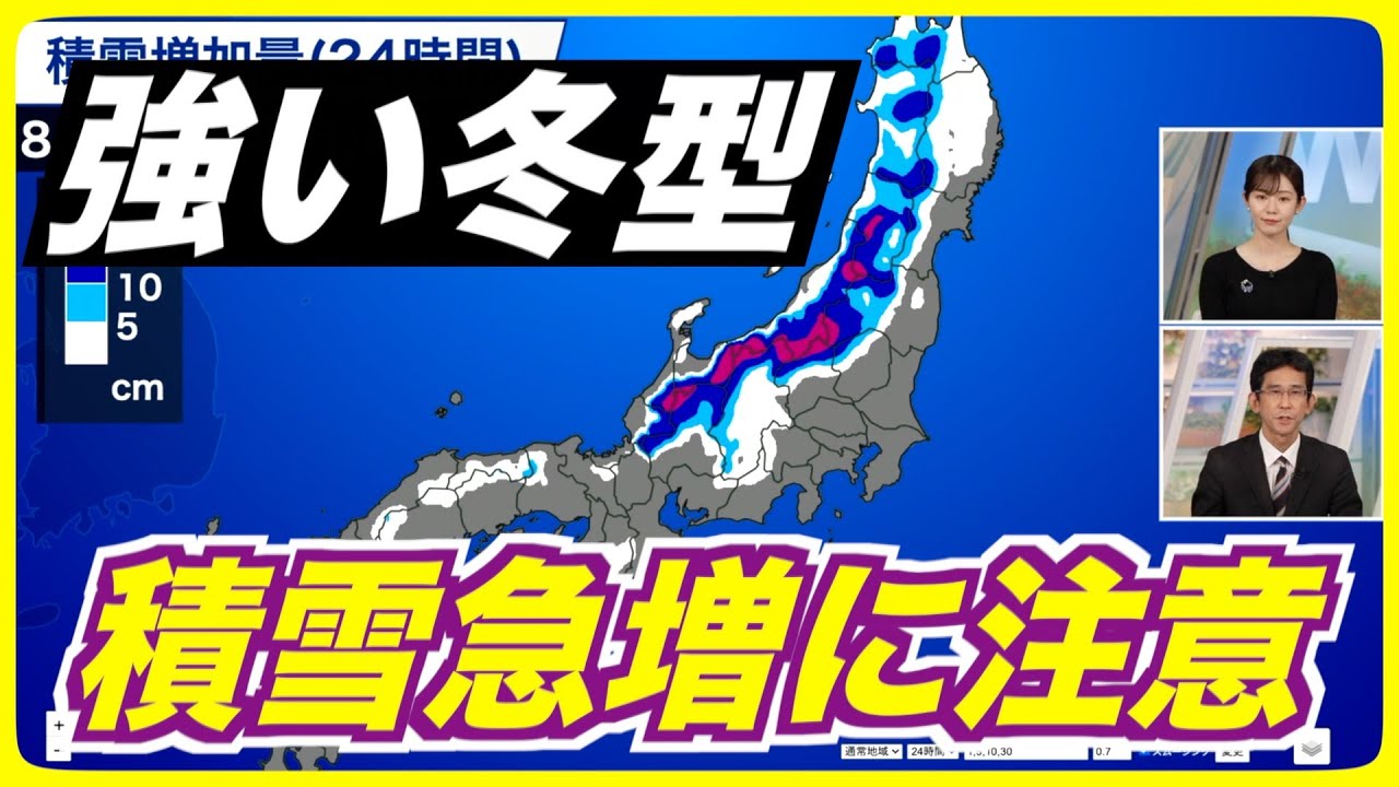 【天気】強い冬型で日本海側は雪や雨 積雪急増や視界不良に注意