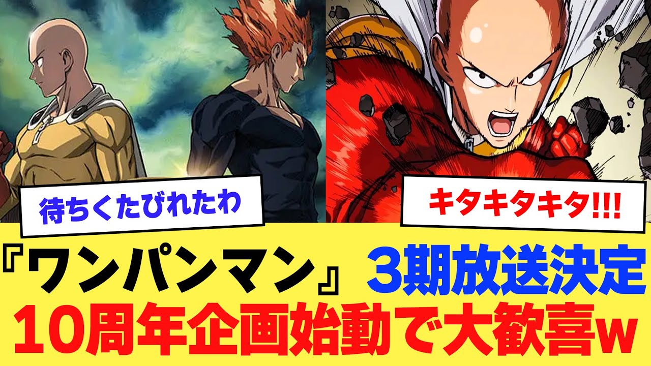 【ワンパンマン】『ワンパンマン』アニメ3期、来年放送決定!新作は6年ぶり、10周年企画始動【2ch】【5ch】【アニメ】