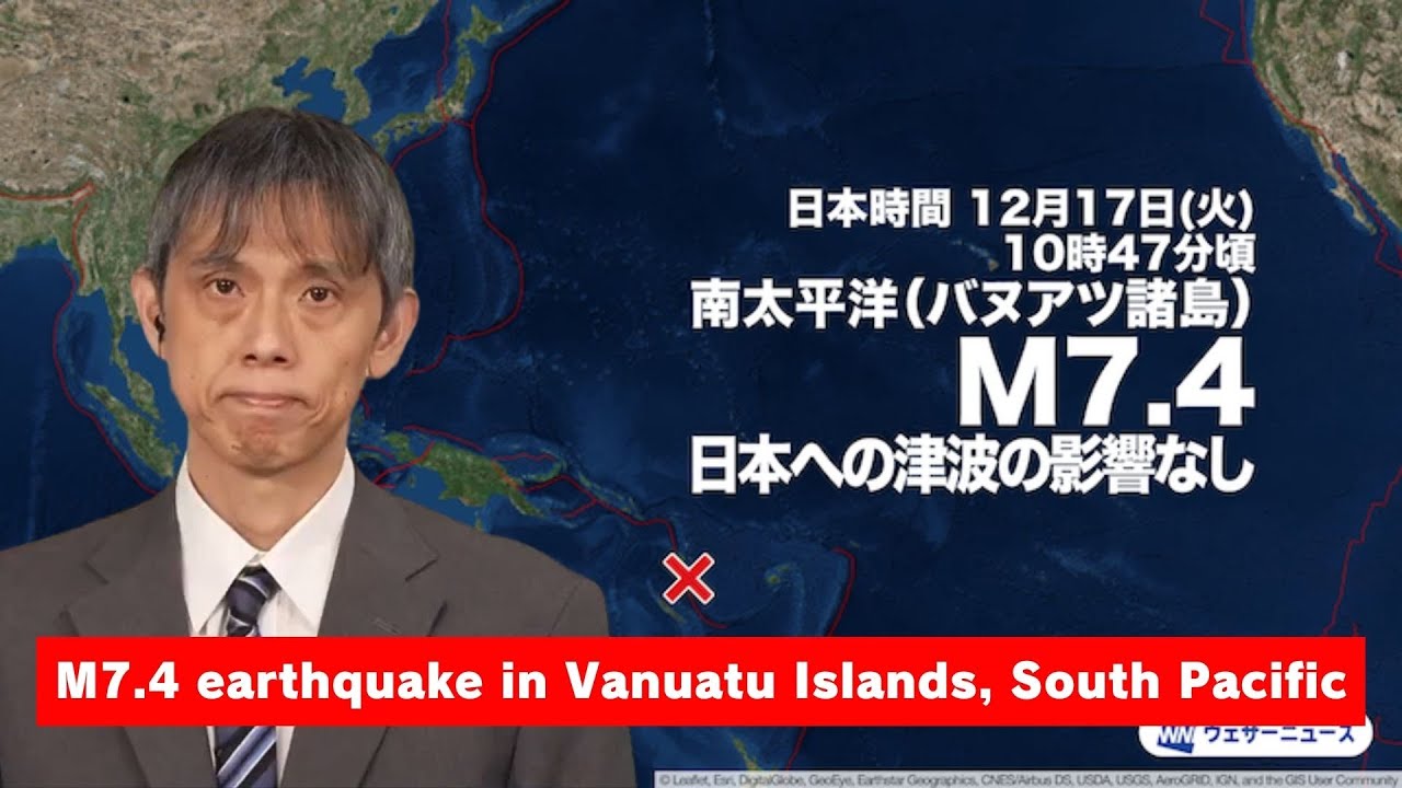 At around 10:47 am on Tuesday, December 17th, Japan time, there was a large-scale earthquake overseas. The epicenter was in the South Pacific (Vanuatu Islands), and the magnitude of the earthquake is estimated to be 7.4.