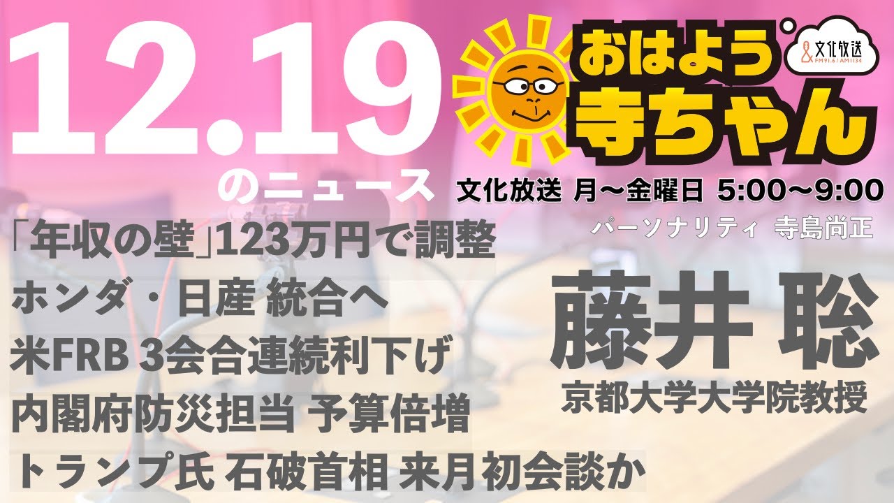 藤井聡(京都大学大学院教授)【公式】おはよう寺ちゃん 12月19日(木) 6時〜7時台