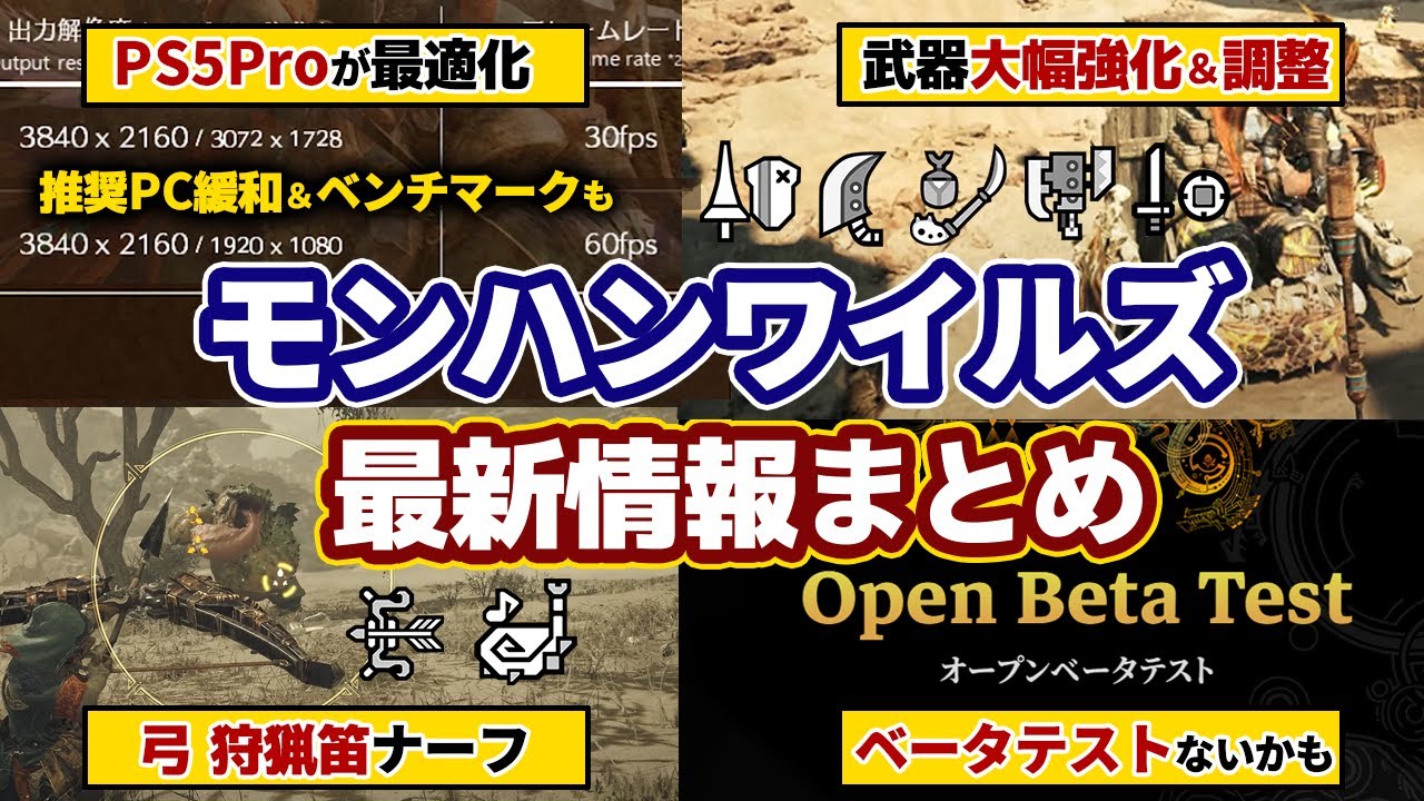 モンハンワイルズ最新情報!フレームレート&画質向上、武器調整(強化&ナーフ)PC推奨スペック緩和、PS5Proエンハンス最適化、ベンチマーク、第2回ベータテスト予定まとめ【モンスターハンターワイルズ】
