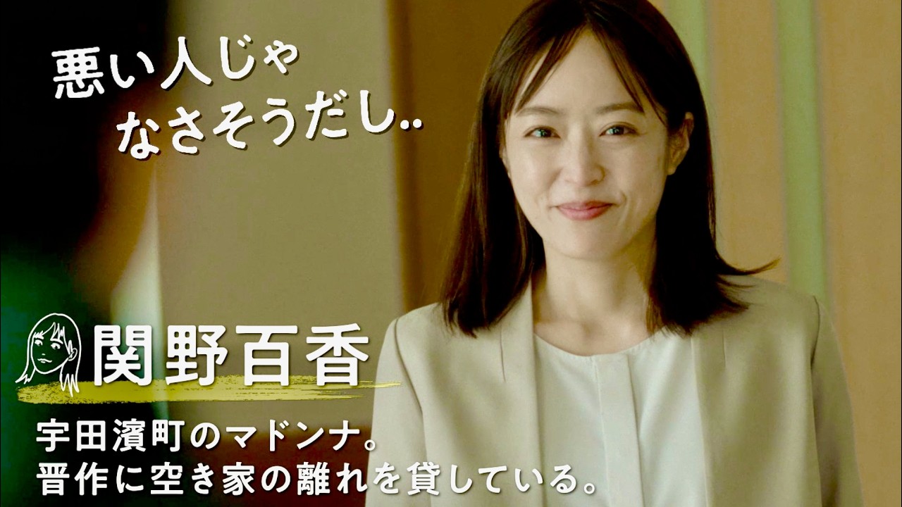 そして、どんな状況でも至ってマイペース、海に落ちてあたふたする晋作に、“ホヤ“を手渡そうと(!?)する「酒と肴をこよなく愛する。関野家の大黒柱」こと百香の父親・章男(中村雅俊)、たまに社員のオンライン飲み会に顔を出す晋作が務めるシンバルの社⻑の大津誠一郎(小日向文世)、お節介焼きなことは自覚している百香の幼馴染で同僚の持田仁美(池脇千鶴)、「宇田濱の生き字引」こと茂子(白川和子)、「宇田濱イチの情報通」で、いつもタコの干物を咥えている重蔵(ビートきよし)、遭遇した晋作が絶叫!宇田濱に住む<クマ>まで、オールキャストが勢揃い!?愛すべき宇田濱の住人たちと晋作のユニークな交流が楽しいキャラクター紹介映像に仕上がっている。