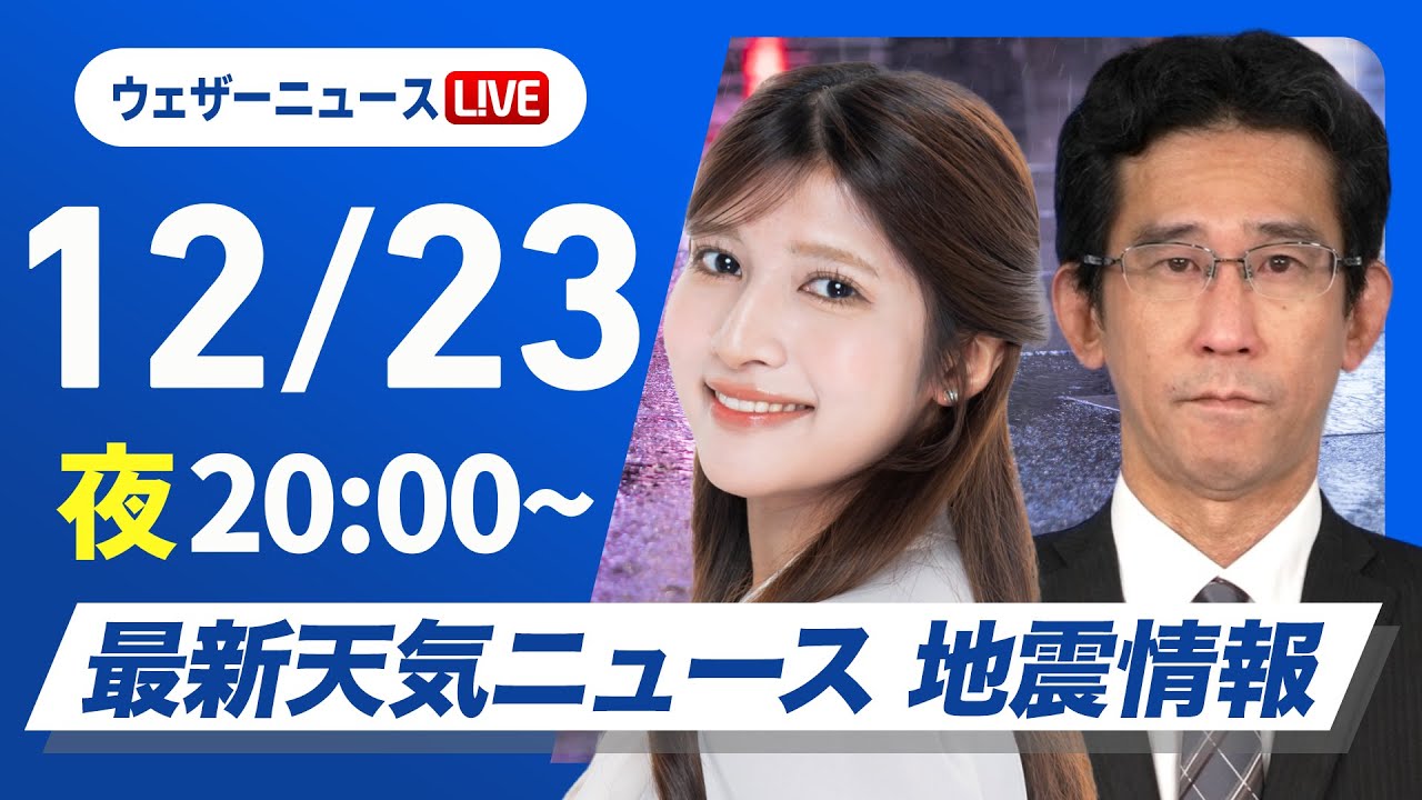 【ライブ】最新天気ニュース・地震情報2024年12月23日(月)/日本海側は大雪警戒〈ウェザーニュースLiVEムーン・岡本結子リサ/山口剛央〉