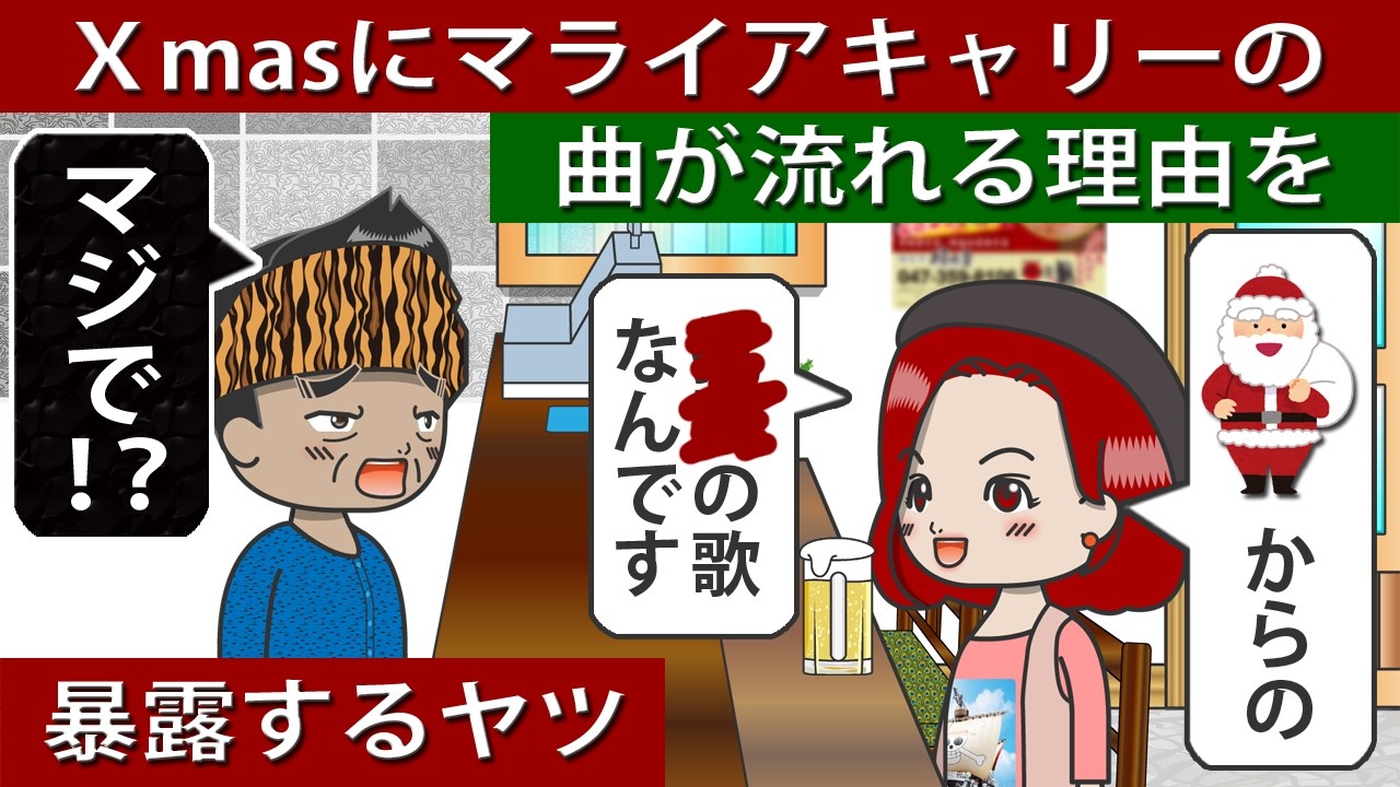 Share Facebook Twitter Pinterest LinkedIn 【アニメドラマ】クリスマスにマライアキャリーの曲が流れる理由の雑学を語るヤツ[008]#クリスマスソング 【編集後記】 久々、新しい背景を作りました。 ほとんどの場面で使っている「厨房とカウンター席を横から見た絵」です。 今後、使うことあるんかなー メリークリスマス! 【登場人物】 虹野憲吾(居酒屋大将) 赤羽梅子(OL?かな?) #アニメ #ドラマ #コメディ #コント animeアニメアニメーションコメディコントドラマドラマアニメ