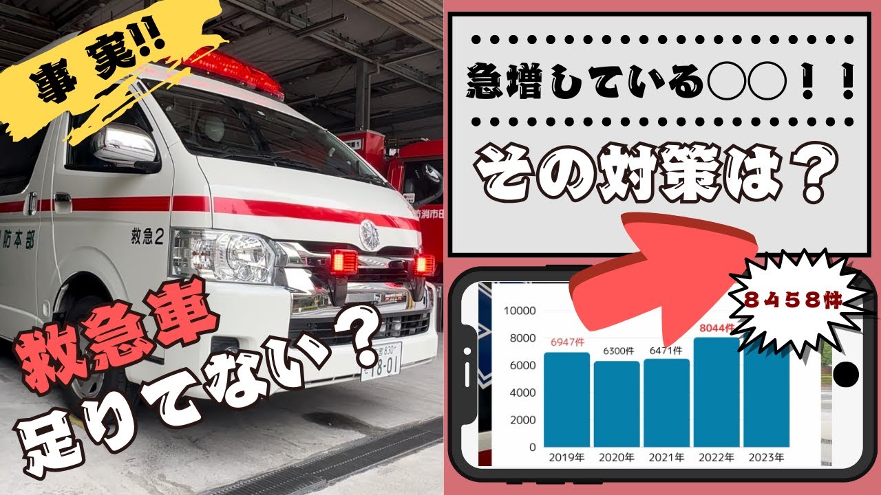 救急車の出場件数が増加しています。救急件数が増加し続けると緊急な傷病者のところに救急車が到着するのが遅れてしまいます。改めて救急車がどんなとき必要なのか考えてみませんか?